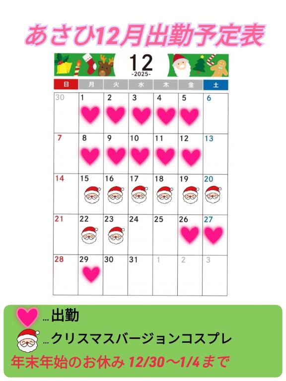 | 12月4日(木) | ◆12/5出勤予定◆予約受付中♪ |
